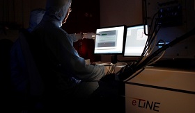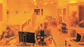 To keep the investigated nanoscale materials and circuits clean from micron-sized particles, all of us need to wear specific gowns in the clean room. The so-called ‘optical lithography’ utilizes light in the ultraviolet such that the clean room needs to be lightened in yellow. Our cleanroom is in general certified as class 4 and in some areas class 0.