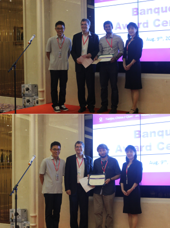 Ganpath Veerabathran and Alexander Andrejew, both doctoral candidates from Prof. Amann's group (E26) at the WSI, received Best Poster Awards at the International Nano-Optoelectronics Workshop (iNOW) in Tianjin, Qian’an & Chengde, China (2017). Ganpath Veerabathran's poster titled "GaSb-based vertical-cavity surface-emitting lasers at 4 μm using type-II quantum wells" was awarded the 1st place out of 42 posters. The prize consists of a certificate and carries a value of 400 USD. Alexander Andrejew's poster titled “Electrically pumped mid-infrared vertical-cavity surface-emitting lasers emitting at 3 μm” was selected for the ‘Honorary mention’ award.