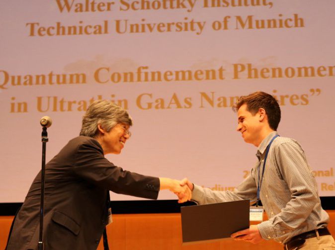 Based on an evaluation by international experts, his oral presentation entitled “Surface passivation and confinement in lattice-matched InGaAs-InAlAs core-shell nanowires was selected as the award winning contribution in the Symposium I “Semiconductor Nanostructures towards Electronic & Optoelectronic Device Applications”. Julian Treu is a Ph.D. student supervised by Dr. Gregor Koblmüller in the group of E24 and is investigating III-V semiconductor nanowires for photonic and light harvesting applications. His excellent contribution was recently also published in J. Treu, et al., Nano Letters 15, 3533 (2015).