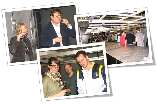 Recently, it was our great pleasure to welcome Dr. U. Kirste from the Bayerische Staatsministerium für Wissenschaft, Forschung und Kunst (Bavarian Science Ministry) during a visit to the group E24 of the Walter Schottky Institut. It was a great opportunity for Prof. Finley and colleagues to discuss current and future research activities. Moreover, after many months in which the first group of laboratories were renovated and prepared for new experiments, we could officially declare the optical laboratories "open" and drink a toast to our future successes ! The hard work building up the laser spectroscopy experiments has now begun, students and staff working tirelessly over the Christmas vacations - check back later in spring 2014 to see how we are getting along!