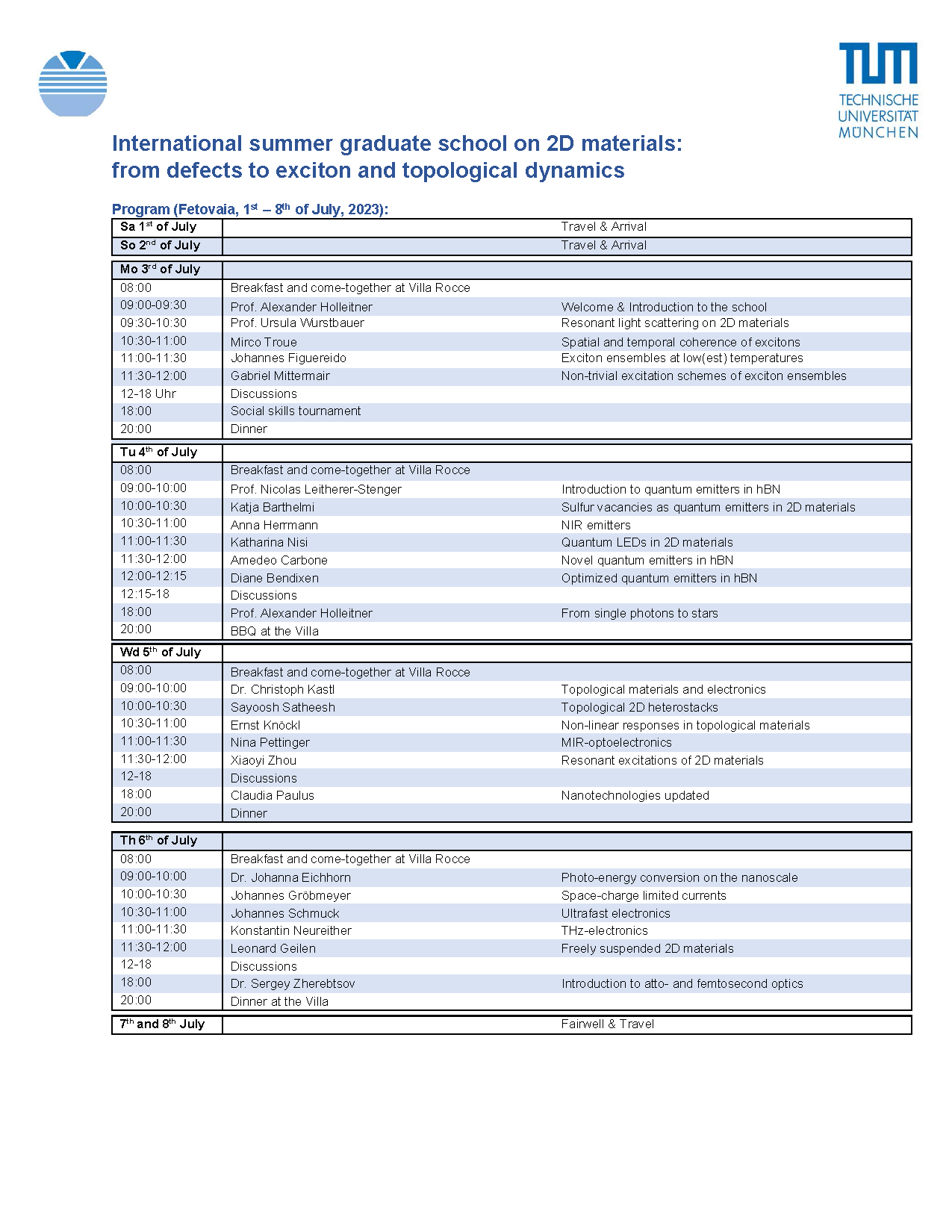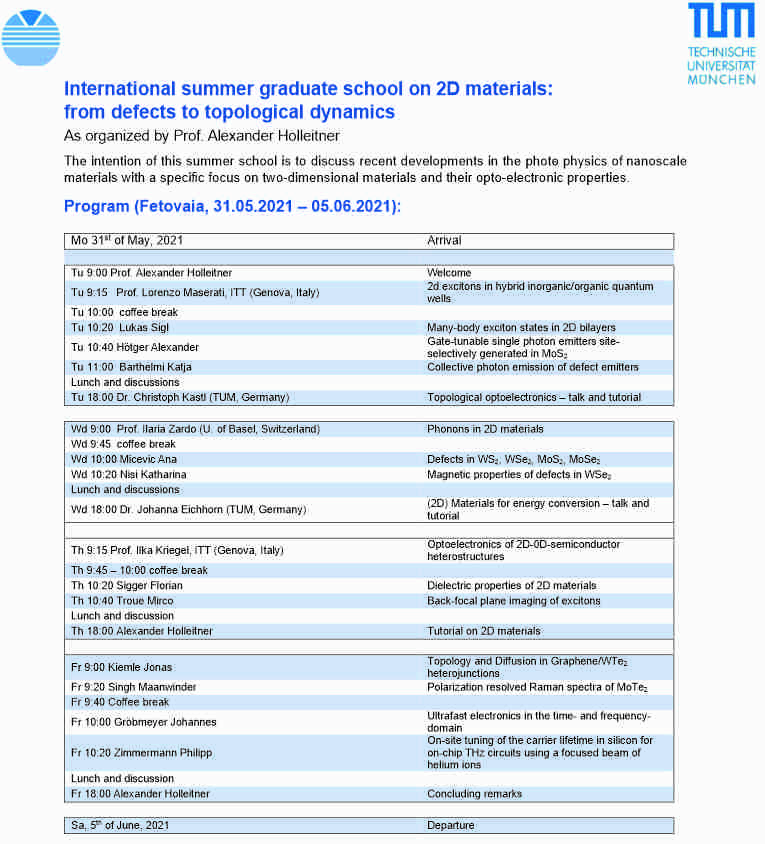 opto/spin-electronic properties. Date: 01.07.-08.07.23 Location: Fetovaia For more information, contact Prof. Holleitner.